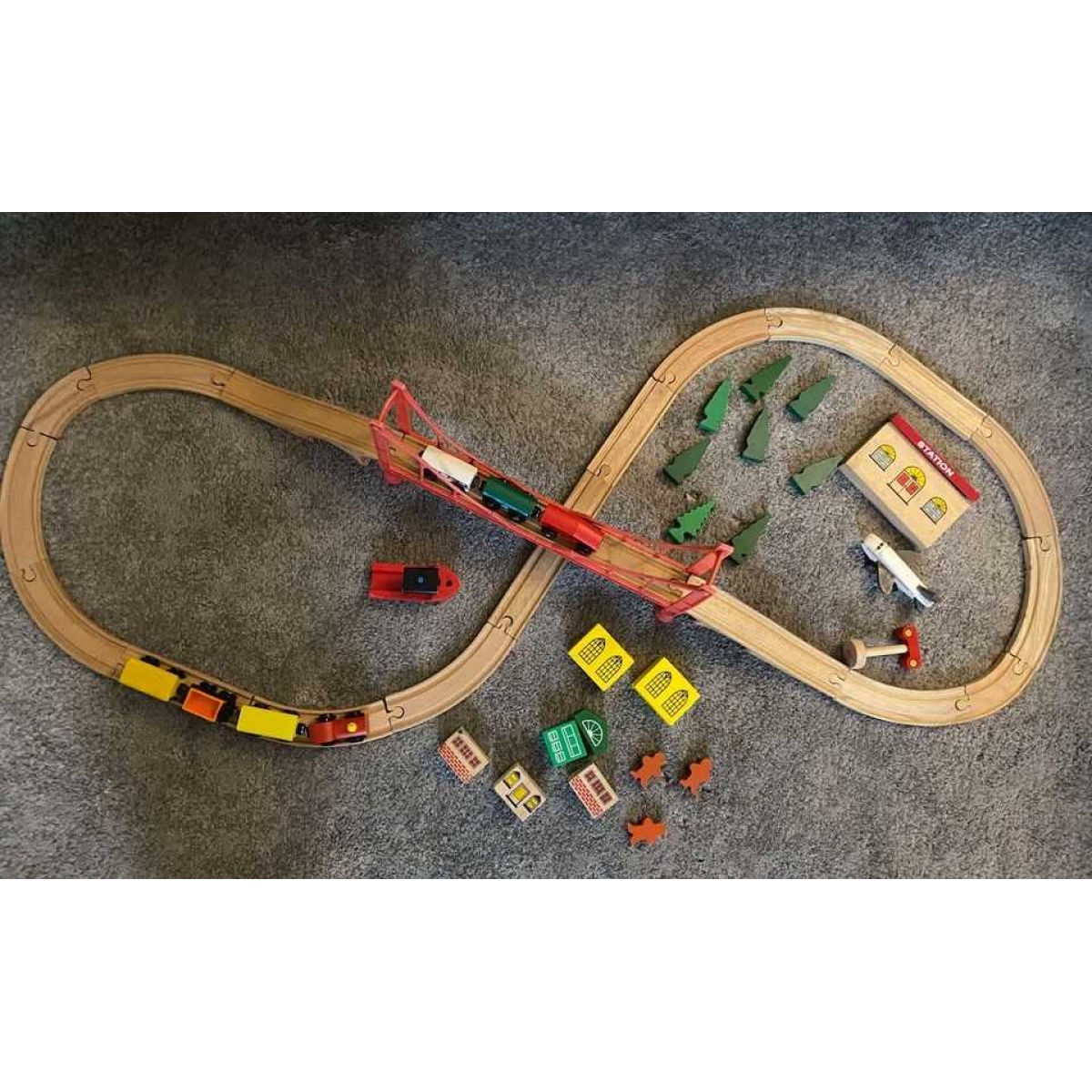 Wooden Train Set With Bridge